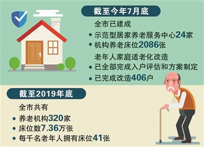 如今,好消息来了,三项民生工程均已进入实质性施工阶段,将助力全市加快打造居家为基础、社区为依托、机构充分发展、医养有机结合的全方位、多层次、立体化养老服务体系。截至今年7月底,全市已建成示范型居家养老服务中心24家、机构养老床位2086张,老年人家庭适老化改造已全部完成入户评估和方案制定、已完成改造406户,这些数字还在迅速上升中。