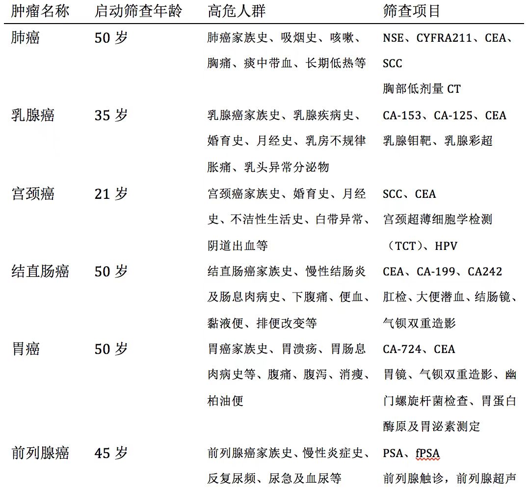 附:《健康体检疾病项目专家共识》恶性肿瘤风险筛查: