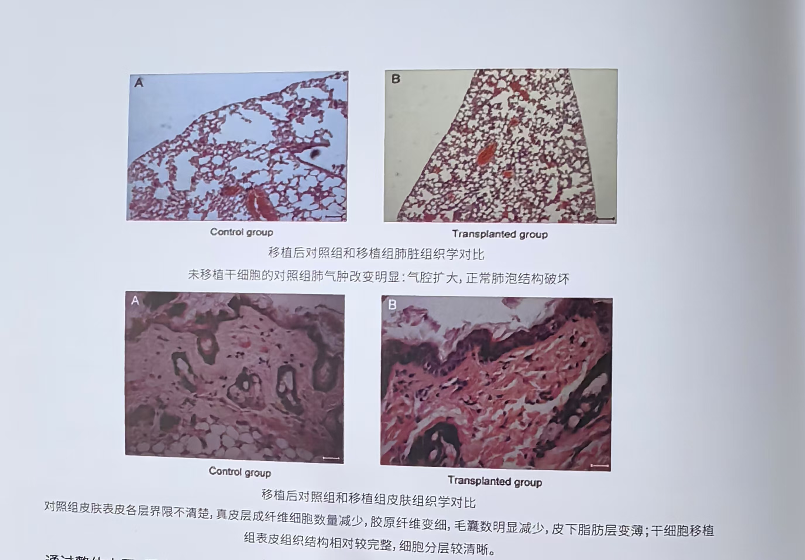通过整体水平、器官水平、组织细胞水平、蛋白质水平、分子水平,以及器官结构和功能方面的检测、数据分析,显示与对照组相比,间充质干细胞移植可以使存活天数延长,抗氧化能力以及免疫功能得到明显提高,延缓了各脏器组织学、结构和功能衰老进程,提示间充质干细胞移植有抗衰老作用。