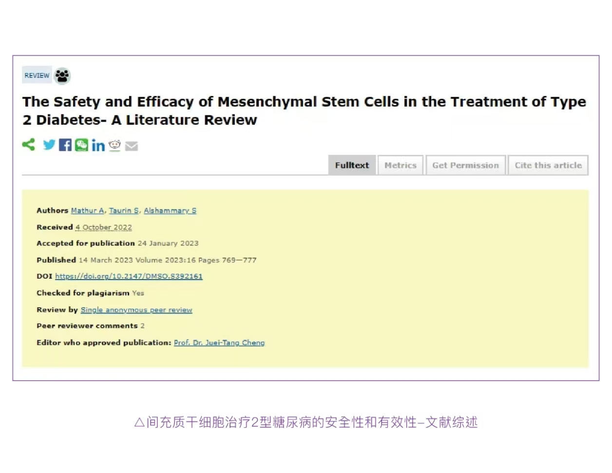 △间充质干细胞治疗2型糖尿病的安全性和有效性-文献综述