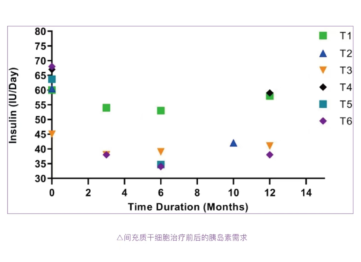 △间充质干细胞治疗前后的胰岛素需求