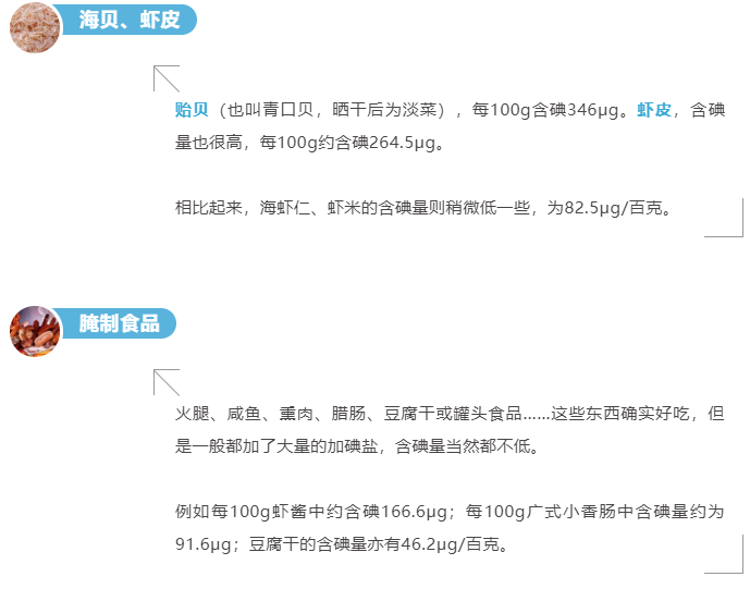 比如说,如果你吃的是无碘盐,那就可以适量吃些海贝、虾皮、加工食品、蛋黄等食物;如果你吃的是加碘盐,那高碘食物就只好忍痛放弃咯~