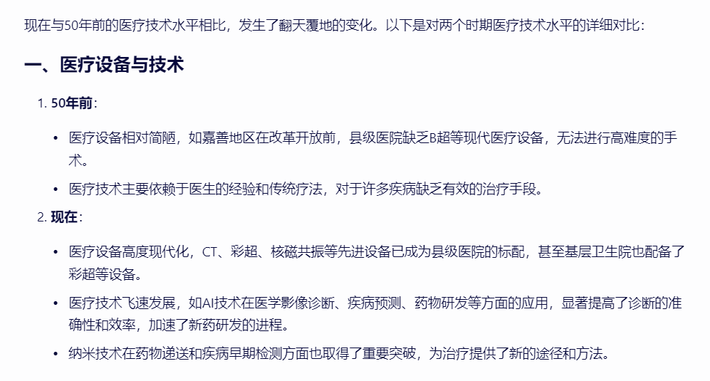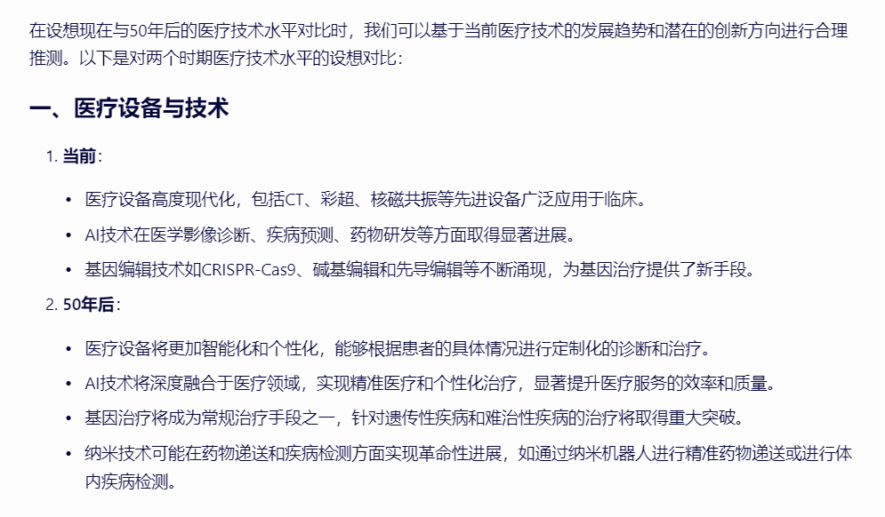 设想现在与50年后的医疗技术水平对比(AI作答,感觉还是不太够畅想,局限了些吧?)
