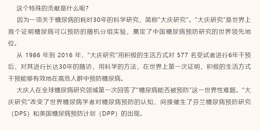 《糖尿病大庆研究》:改写慢性病防控范式的中国实践