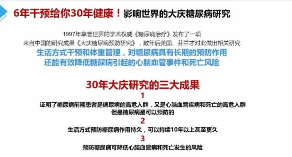 《糖尿病大庆研究》以30年数据证明:短期生活方式干预可产生长达数十年的“代谢保护记忆”