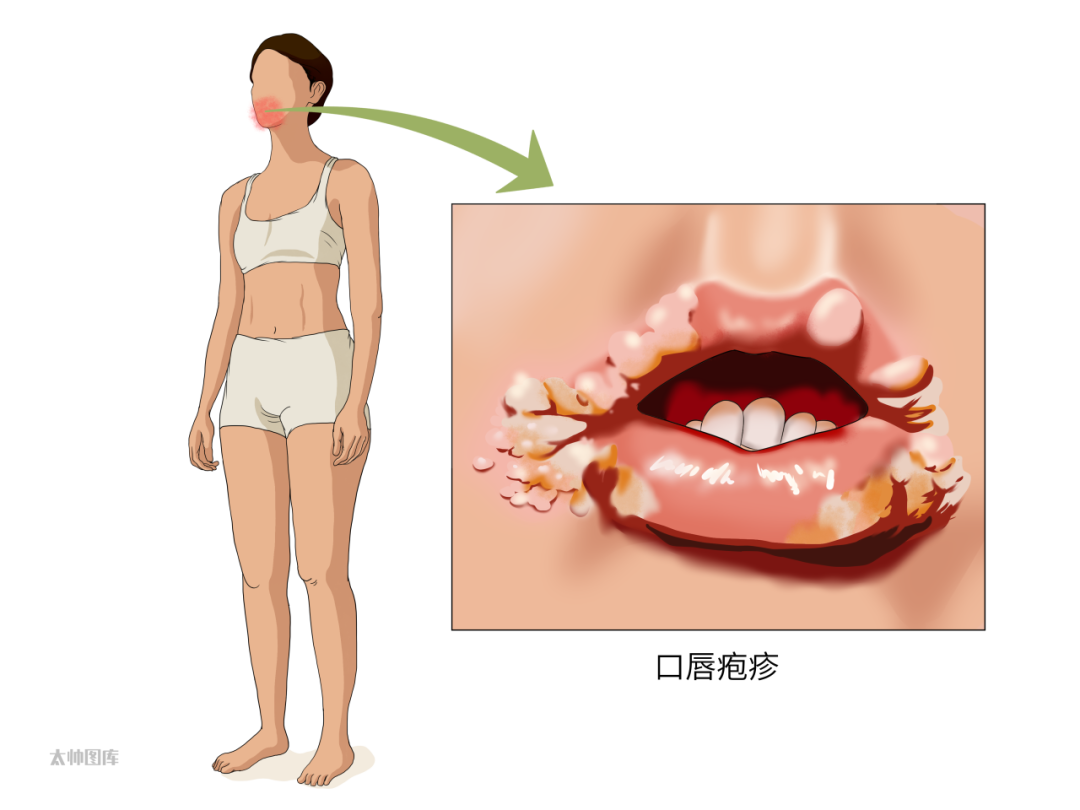HSV-1:主要引起口唇疱疹(俗称"上火疱");
