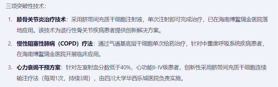 技术亮点:脐带间充质干细胞关节腔注射,避免传统手术创伤。