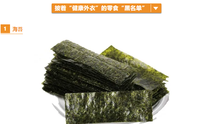 海苔常常被推荐为一种低热量的健康零食。可我要说:NO!虽然它的原料——紫菜,本身是一种富含蛋白质、维生素、多种矿物质和大量膳食纤维的藻类,但是被做成香香脆脆、一旦开吃就停不下来的海苔,自然是少不了调味料的“帮助”,食盐和白砂糖都是必不可少的小帮手。