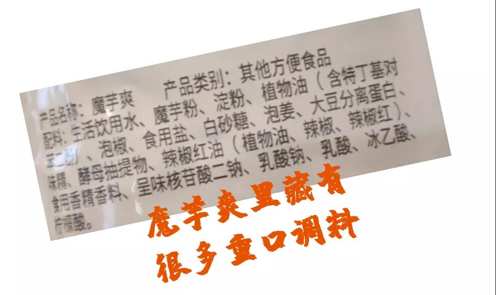 配料表中,各种调味品、香精、香料的添加,也暴露了魔芋爽并非完美健康的零食。食用也要控制食量,尤其孩子不宜多吃。
