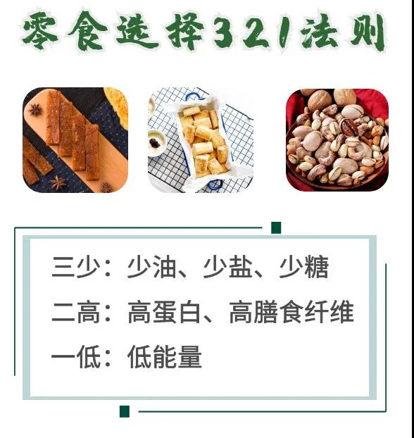 总的来说,零食选择以“三少、两高、一低”为原则,即少油、少盐、少糖,高蛋白、高膳食纤维,低能量。