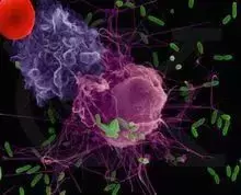 这是中性粒细胞追击金黄色葡萄球菌的一个过程。免疫细胞捕捉细菌时超萌!
