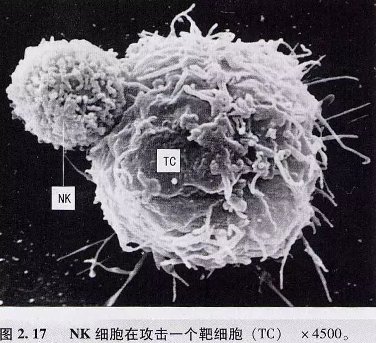 NK细胞较大,含有胞浆颗粒,故称大颗粒淋巴细胞。NK细胞可非特异直接杀伤靶细胞,这种天然杀伤活性既不需要预先由抗原致敏,也不需要抗体参与,且无MHC限制。