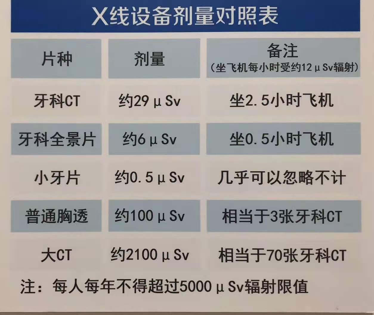 口腔科 拍片的辐射剂量对比