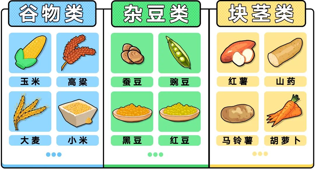 先来说说啥是粗粮,粗粮是相对我们平时吃的大米白面等细粮而言的,根据不同的形态,可将粗粮分为三大类: